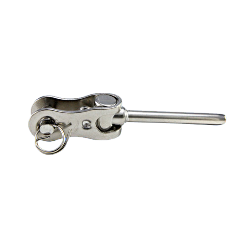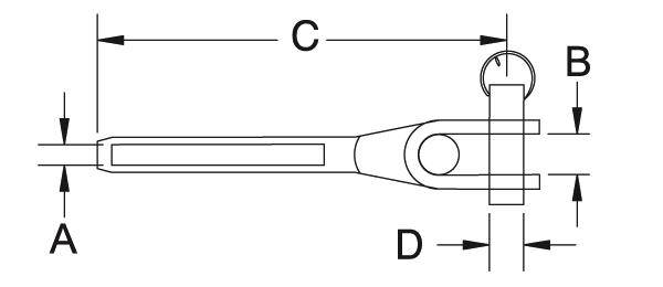 Installs on a tab or eye bolt, fixed fitting, requires a tensioning fitting on the other end, typically a Open Jaw Turnbuckle.